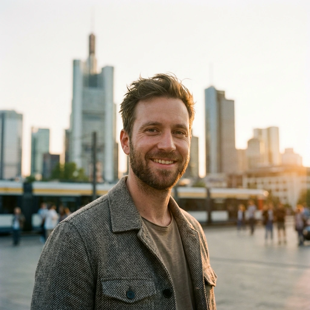 Wir treffen uns in Frankfurt. Kein Posing, keine Scheinwerfer. Wir quatschen wie Kumpels, laufen durch die Stadt – und nebenbei entstehen deine besten Bilder.